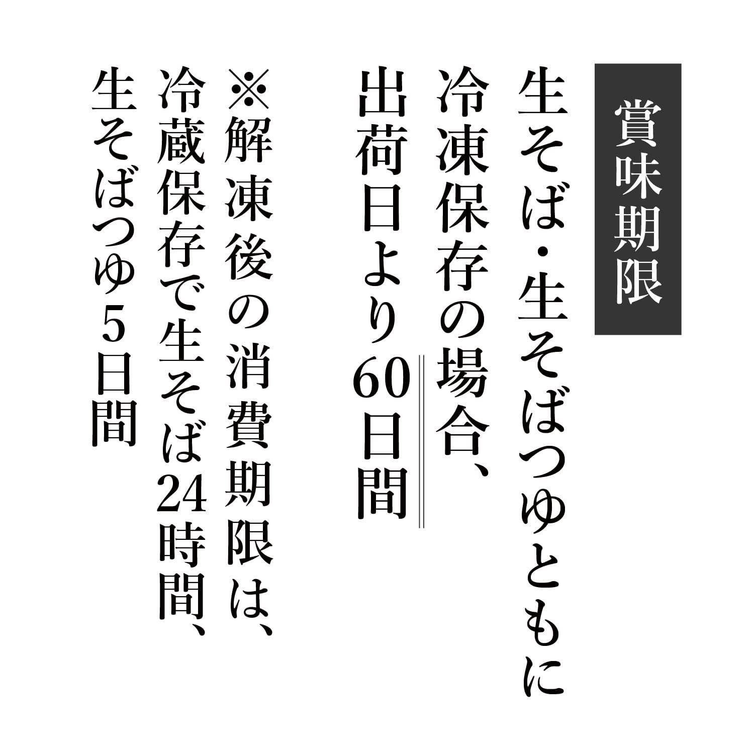 ※解凍後の消費期限は、冷蔵保存で生そば24時間、そばつゆ5日。